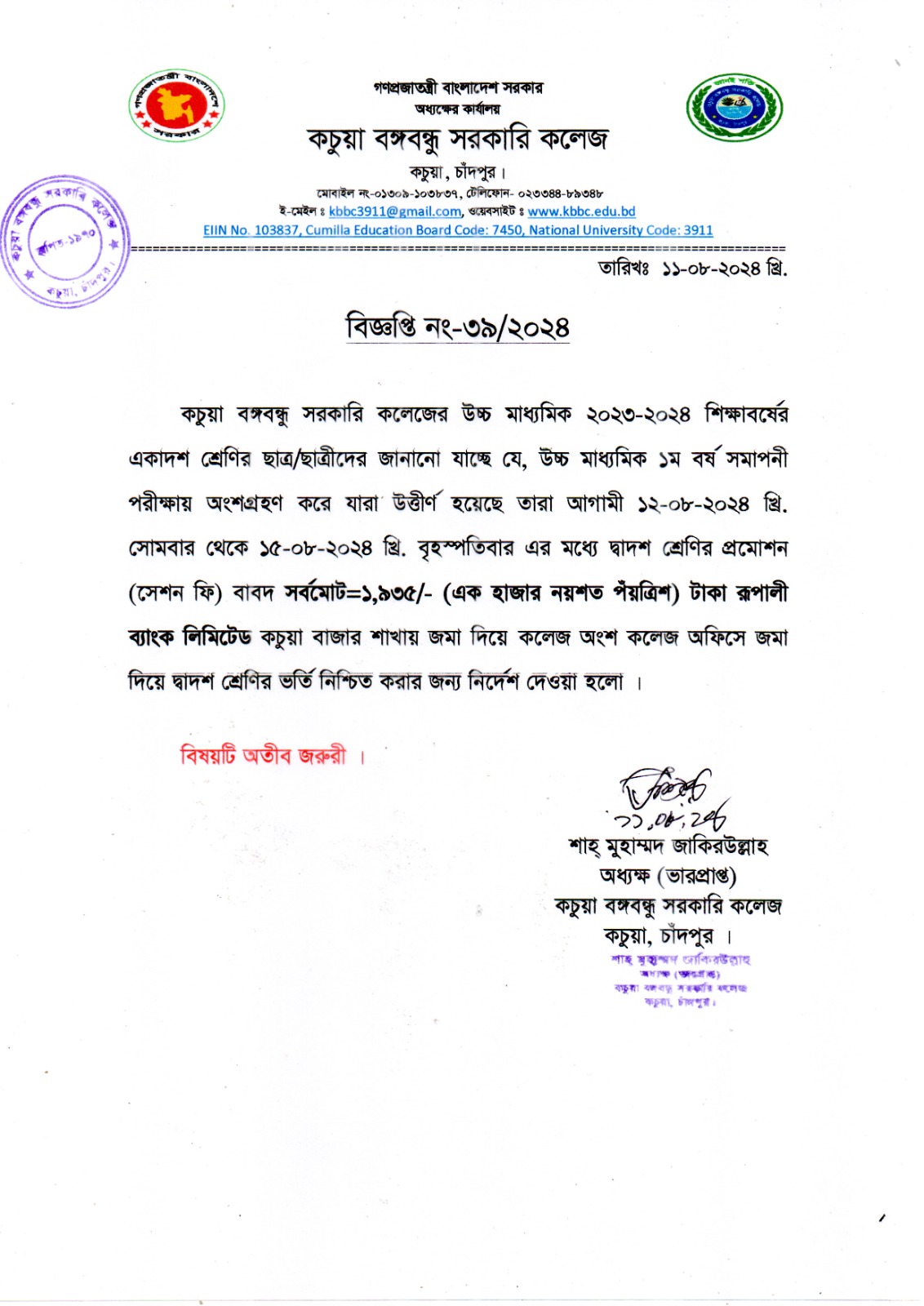 | 25-Jul-2024 | একাদশ শ্রেণিতে ভর্তির সংশোধিত নোটিশ |  |